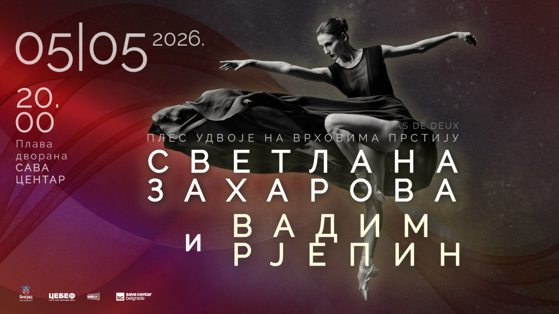 Svetlana Zaharova, jedina aktivna igračica koja nosi titulu prima ballerina assoluta i njen suprug, ugledni violinista Vadim Rjepin predstaviće beogradskoj publici svoju hit predstavu "Pas de deux - Ples udvoje na vrhovima prstiju" 5. maja u Sava centru.