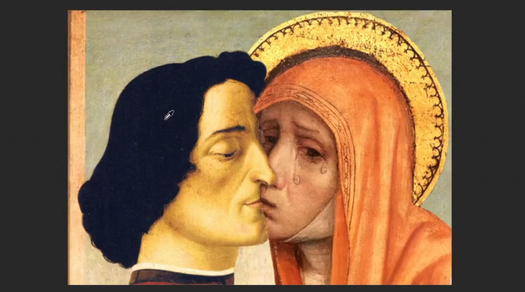"Oluja dolazi" nazvala je delo u kom je ukombinovala pejzaž Van Goga i Ticijanovu sliku, dok je na drugom radu spojila Klimtovu "Tri doba žene" sa Isusom sa Botičelijevog remek-dela "Madona i knjiga".