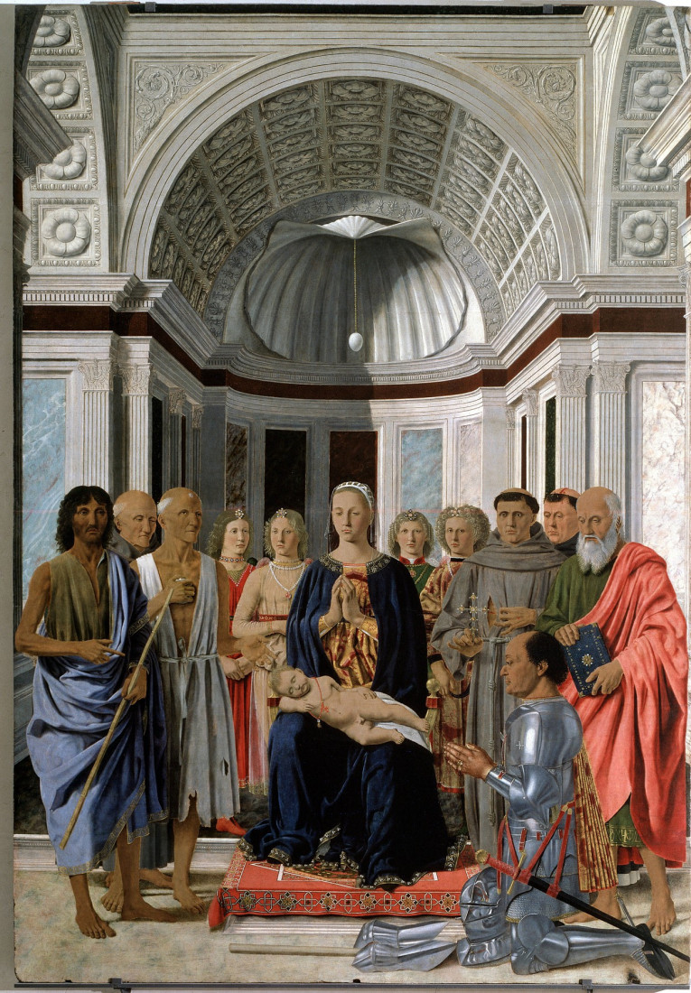 Italijanski slikar Pjero dela Frančeska naslikao je 1472. jedinstven prikaz takozvanog "Svetog razgovora", u kom Bogorodica sa Hristom stoji okružena svetiteljima. Iznad njene glave je u ovoj verziji renesansnog majstora visilo sa plafona nojevo jaje koje je zaokružio kompletnu kompoziciju elemenata ove slike jedinstvene kako po proporcijama, tako i po ikonografiji.