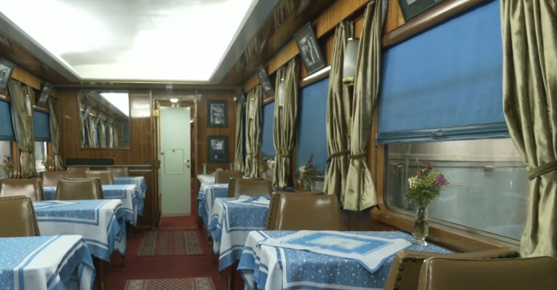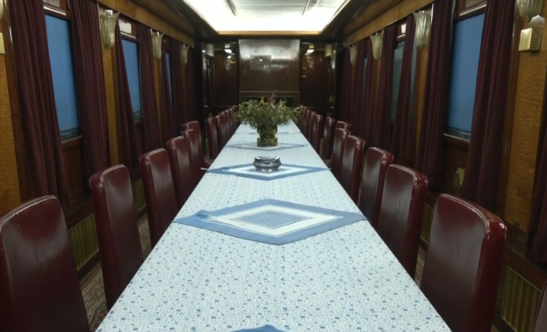 "Sto ima 28 mesta, a u centralnom delu su dve posebne stolice – za Tita i glavnog gosta. Ostali članovi delegacije sedeli su pored. Harmonika vrata su se zatvarala, a u drugom delu su bili supruga, novinari i prevodioci. Tu su služeni kafa i čaj dok su trajali sastanci. Postojao je i projektor, pa su se tokom vožnje gledali filmovi – platno se postavi, svetla se ugase i projekcija počne", objašnjava Budimir.