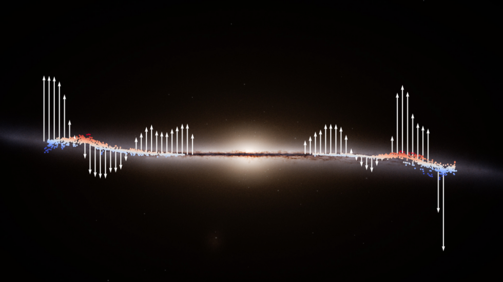 Astronomi već oko jednog veka znaju da zvezde Mlečnog puta kruže oko srca galaksije, a Gaia je precizno izmerila njihove brzine i putanje. Još pedesetih godina prošlog veka otkriveno je da galaktički disk nije ravan, već iskrivljen. Zatim je 2020. godine Gaia pokazala da taj iskrivljeni disk polako osciluje tokom vremena – slično kao što se klati zvrk koji se okreće.