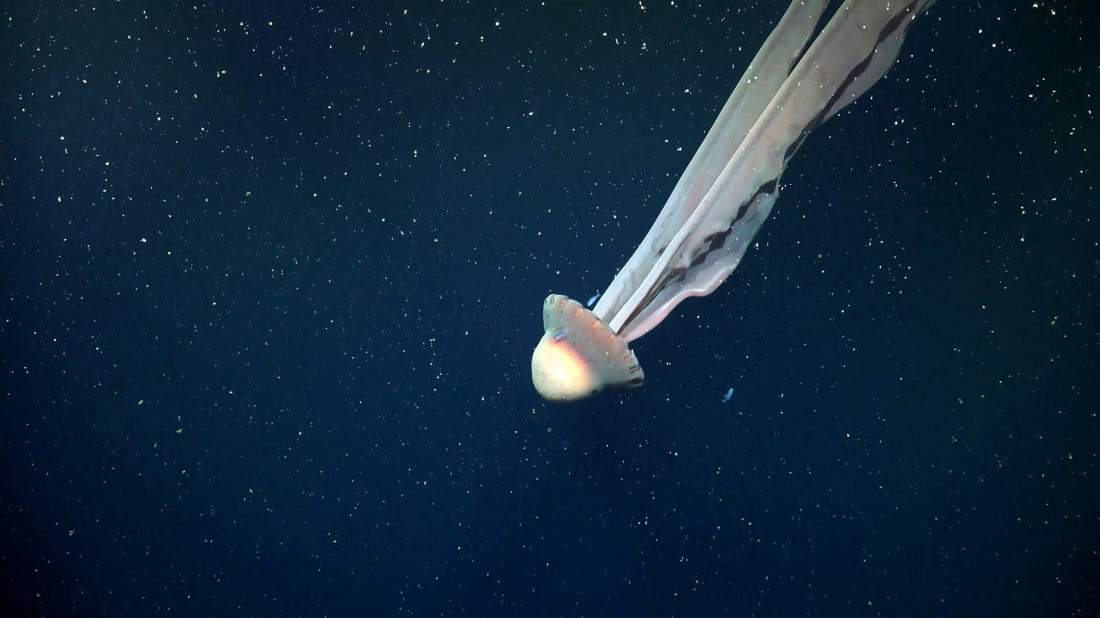Retka "duh" meduza snimljena je u dubinama okeana, nedaleko od obale Argentine, tokom jedne istraživačke misije.