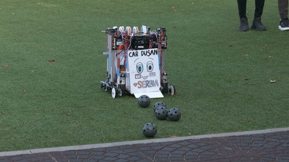 "Imamo dve alijanse - crvenu i plavu i svaku alijansu čine po tri robota, odnosno tri ekipe. Oni zajedno pokušavaju da skupe što više loptica, koje predstavljaju ugljendioksid i ubace ih u jedan levak na sredini igrališta. Naš robot je skupljao loptice, donosio ih je do jednog ugla, a odatle je jedan naš član tima, koji je inače košarkaš, ubacivao loptice tamo gde treba", objašnjava Vujović.