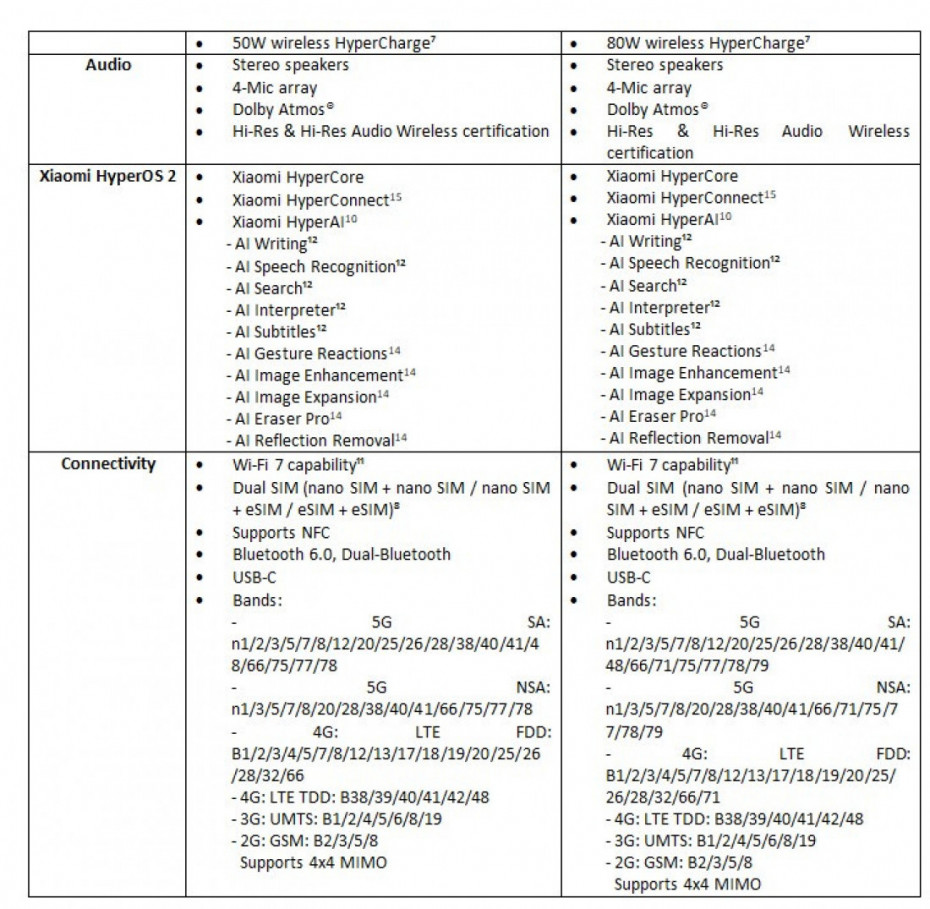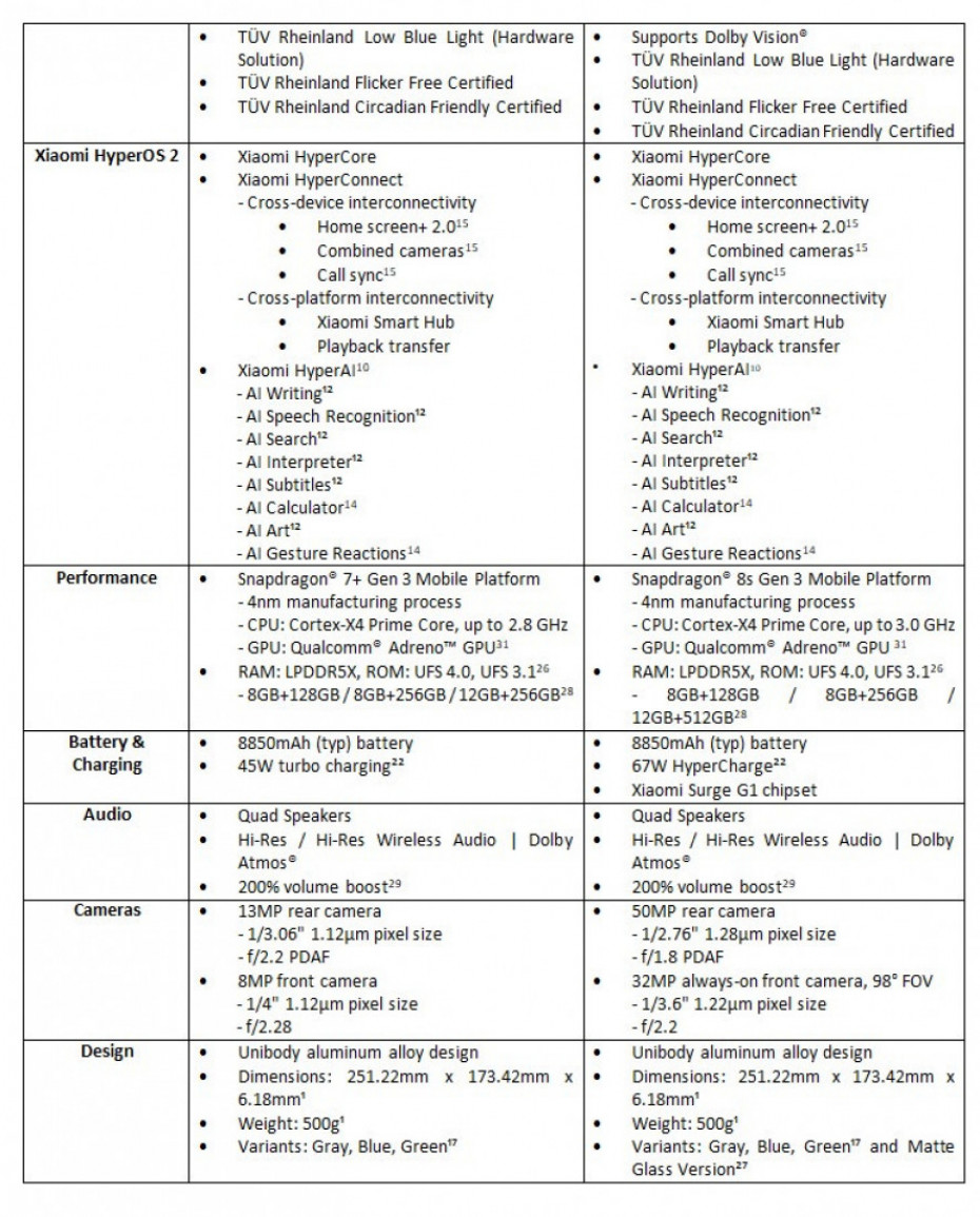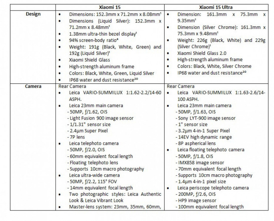 Xiaomi 15 and Xiaomi 15 Ultra Specifikacije: