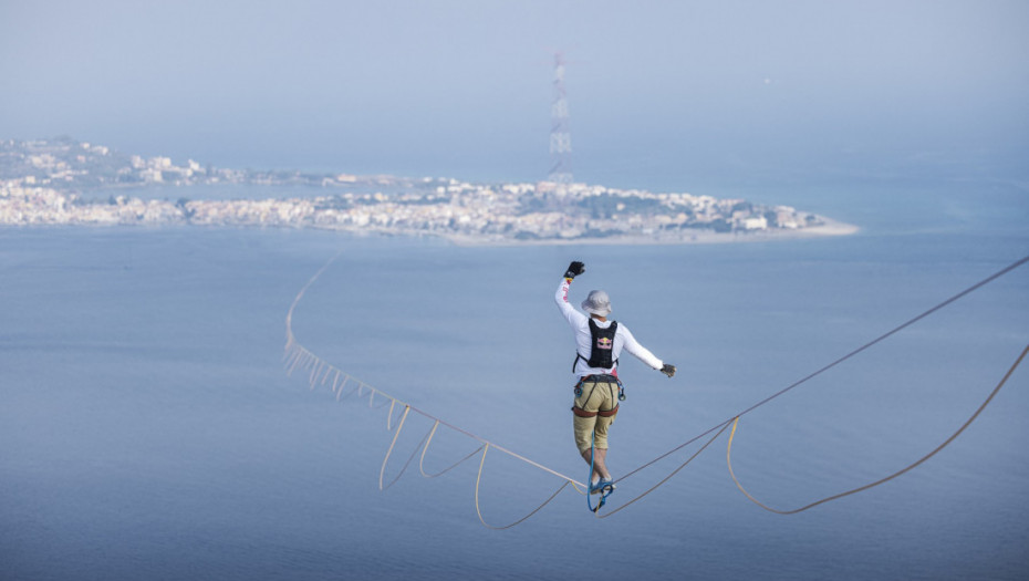 Na žici prošetao od italijanskog kopna do Sicilije: Pad u poslednjih 80 metara ga koštao Ginisovog rekorda