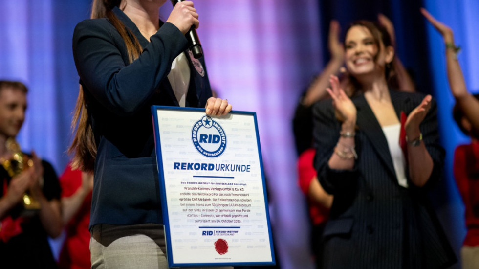 Svih 1.170 osoba igralo je Katan istovremeno oko dva sata u zatvorenoj areni Grugahale, objavila je izdavačka kuća Kosmos, trećeg dana sajma "Spiel Essen 2025".
