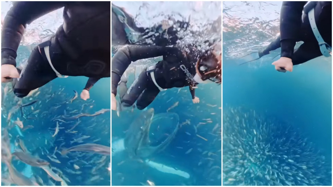 Srećom, uspeli su da jedno drugo izbegnu u poslednjem trenutku, a roniteljka je bezbedno isplivala na površinu.