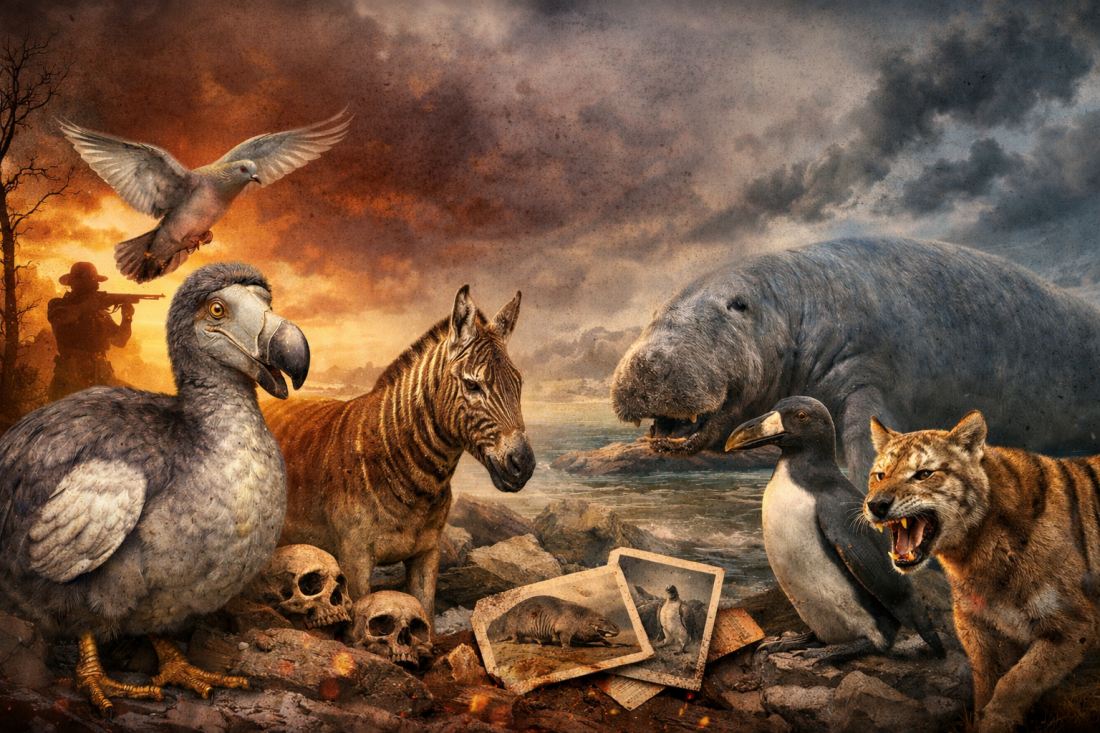Nestanak životinjskih vrsta često se pripisuje prirodi i vremenu. Međutim, istorija govori drugačije. U brojnim slučajevima čovek je bio direktni uzrok potpunog istrebljenja čitavih vrsta — i to za svega nekoliko decenija. Nekontrolisan lov, uništavanje staništa i ljudska pohlepa izbrisali su životinje koje su milionima godina uspešno opstajale bez problema.