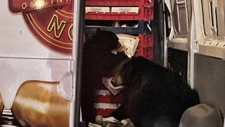 Medvedica i jedno od njenih mladunaca koji su lutali u blizini prodavnice, shvatili su otvorena vrata kombija kao poziv da uđu i posluže se krofnama.