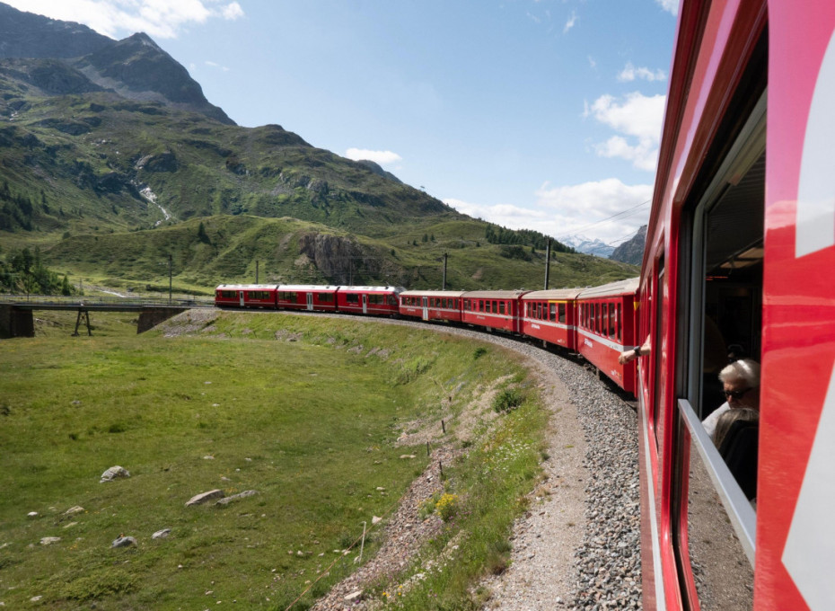 Pređite preko švajcarskih Alpa, prolazeći kroz 91 tunel i preko 291 mosta, dok uživate u panoramskim pogledima na snežne vrhove, ledenoplava jezera i duboke klisure.