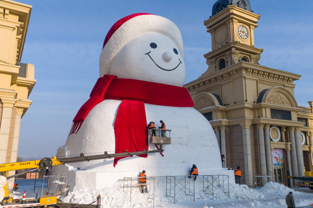 U gradu Harbin na severoistoku Kine napravljen je džinovski sneško visine 19 metara, preneli su danas kineski mediji.