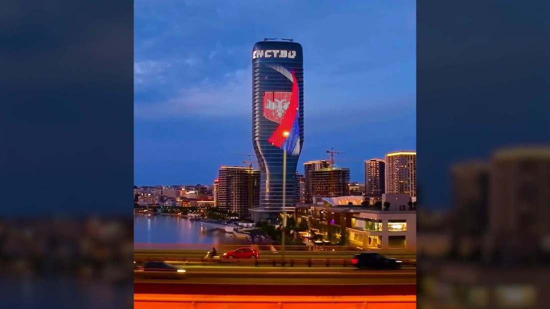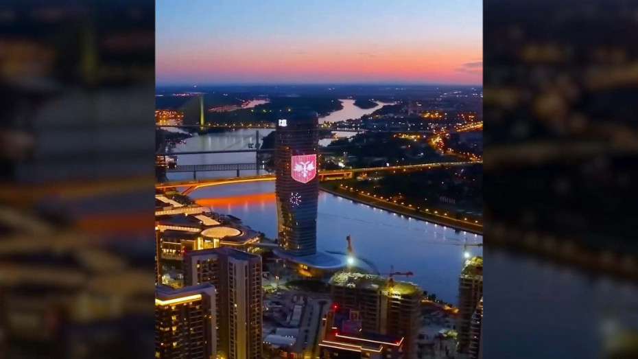 Animacije srpske trobojke, grba reprezentacije i fudbalera sa loptom večeras su se smenjivale na Kuli, uz poruku "Srećno Orlovi. Cela nacija je svim srcem uz vas", saopštila je kompanija Belgrade Waterfront.