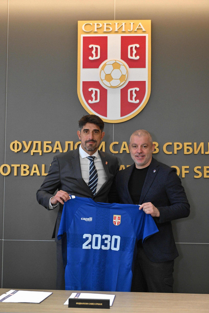 Odmah nakon potpisivanja ugovora, predsednik Džajić i generalni sekretar Radujko uručili su novom selektoru dres sa brojem 2030 i porukom koju su njegovi ‘orlići’ nosili tokom trijumfalnog puta na Novom Zelandu – Bog svoje najteže misije daje svojim najboljim izabranicima.