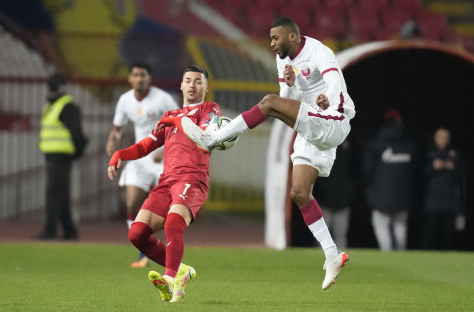 Selekcija domaćina Mundijala naredne godine prva je pripretila: u 12. minutu: Almoez Ali je imao prodor po desnoj strani ali je debitant Vanja Milinković Savić pravovremeno intervenisao.