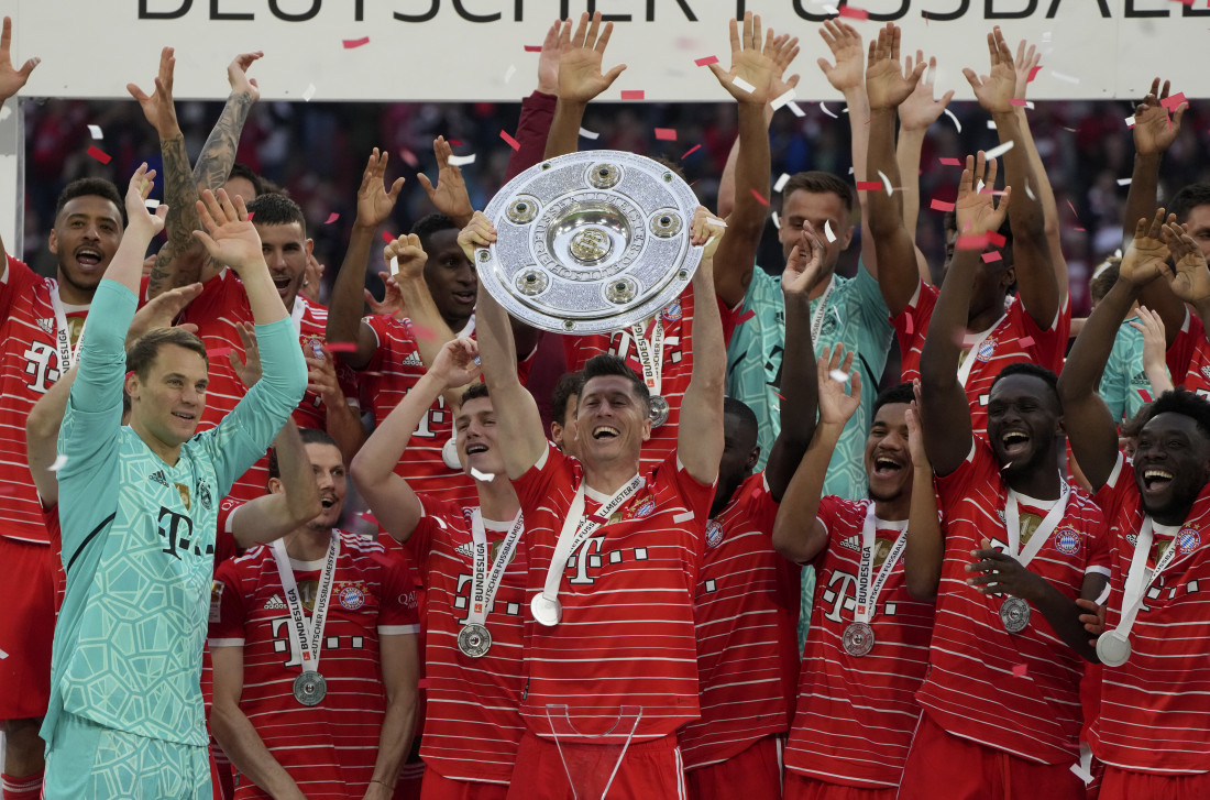 Fudbaleri Bajerna i Štutgarta odigrali su nerešeno 2:2 (2:1) u meču pretposlednjeg 33. kola nemačke Bundeslige, a pre početka duela na ''Alijanc areni'' igračima bavarskog tima dodeljen je pehar za osvojenu 32. titulu prvaka Nemačke.