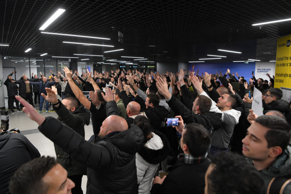 - Nema više mesta na dolaznom peronu i pitanje je kako će Obradović napustiti aerodrom. Policija je došla na lice mesta kako bi regulisala veliku masu.