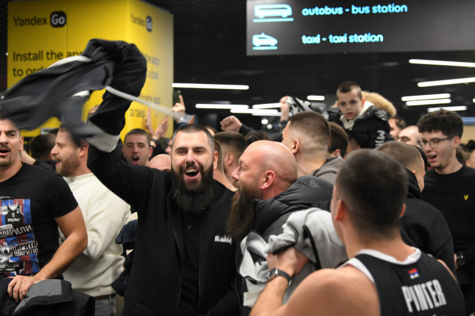 - Prema našim informacijama sa lica mesta, atmosfera na aerodromu je uzavrela, toliko da pokliči navijača uz ime "Obradović Željko" podsećaju na početke utakmica crno-belih u Evroligi.