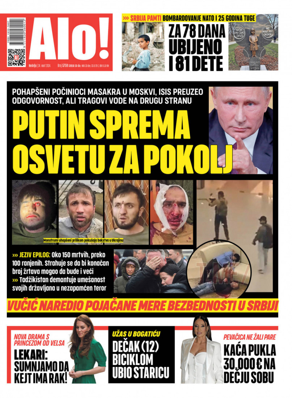 Pogledajte šta na naslovnim stranama donose dnevne novine u Srbiji u izdanju za nedelju, 24. mart.