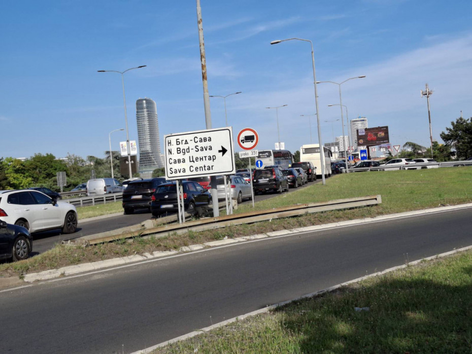 Da je saobraćaj pojačan u ovom delu grada pokazuju fotofrafije našeg fotoreportera. Gužva se stvara na moto-putu kod Sava centra i automobili se sporo kreću.