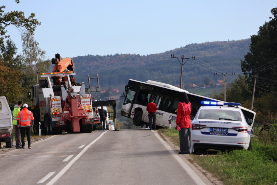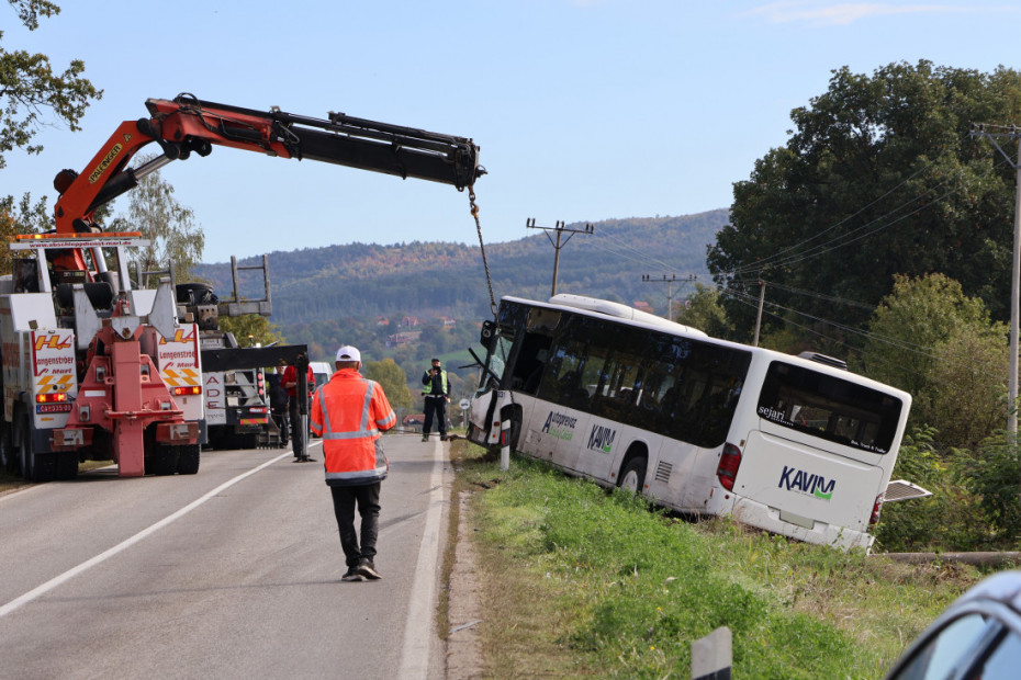 Sa mesta nesreće u Bresnici kod Čačka: Nakon sudara autobus završio u jarku (FOTO)