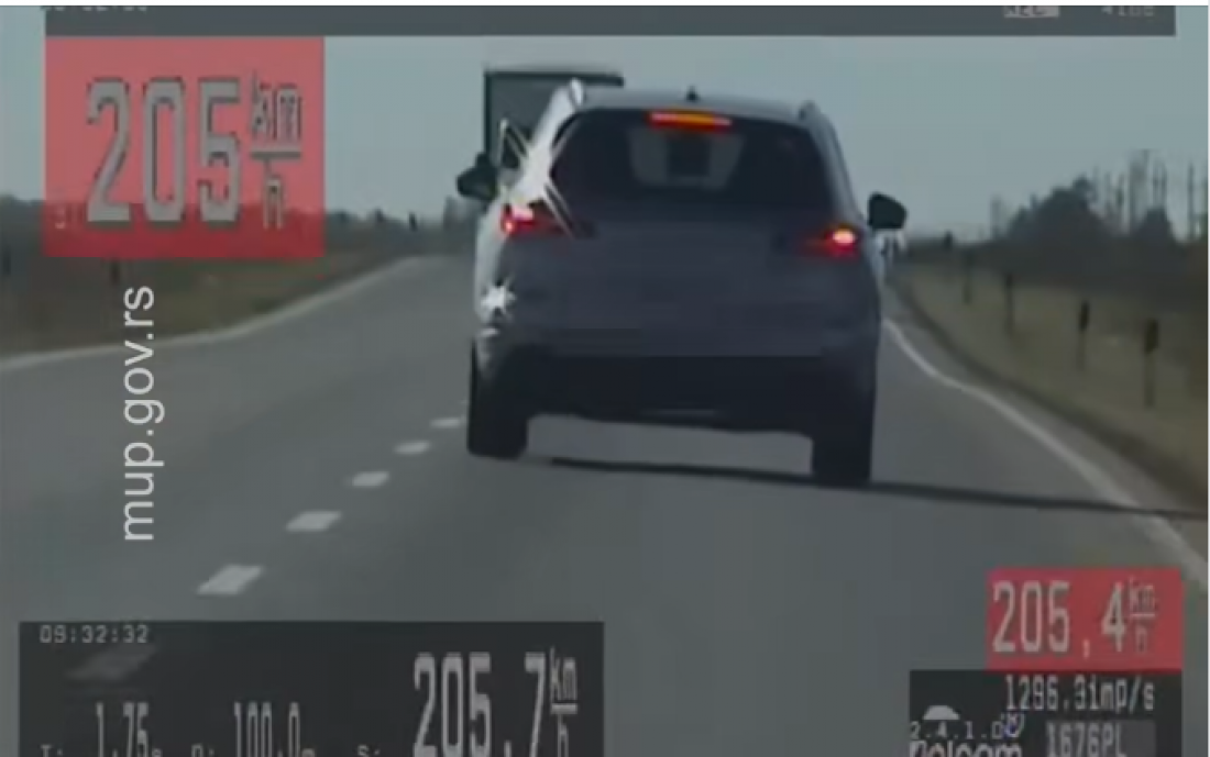 Pripadnici Ministarstva unutrašnjih poslova, Uprave saobraćajne policije, danas su na državnom putu Kikinda–Zrenjanin zaustavili četrdesetogodišnjeg vozača koji je automobilom "Volkswagen Touareg“ slovačkih registarskih tablica vozio brzinom od 205,7 kilometara na čas, na deonici gde je ograničenje 80 kilometara na čas.
