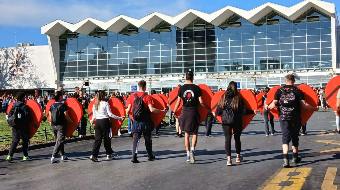 13.20 Studenti u blokadi doneli 16 belih ruža i srca ispred Železničke stanice