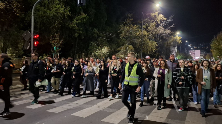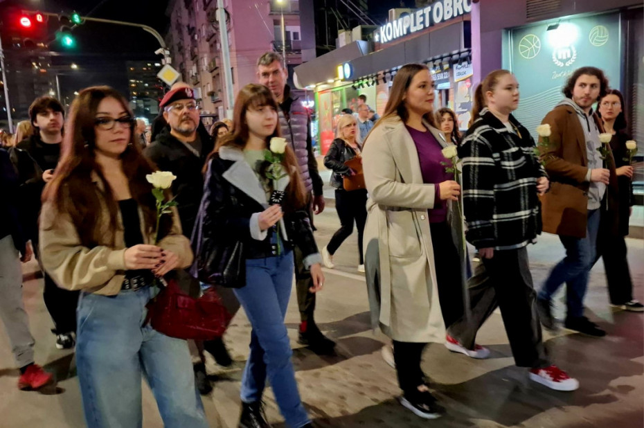 Nišlije su se okupile na kružnom toku kod Delte, odakle su krenule u komemorativnu šetnju do Železničke stanice gde će biti odata pošta stradalima u padu nadstrešnice.
