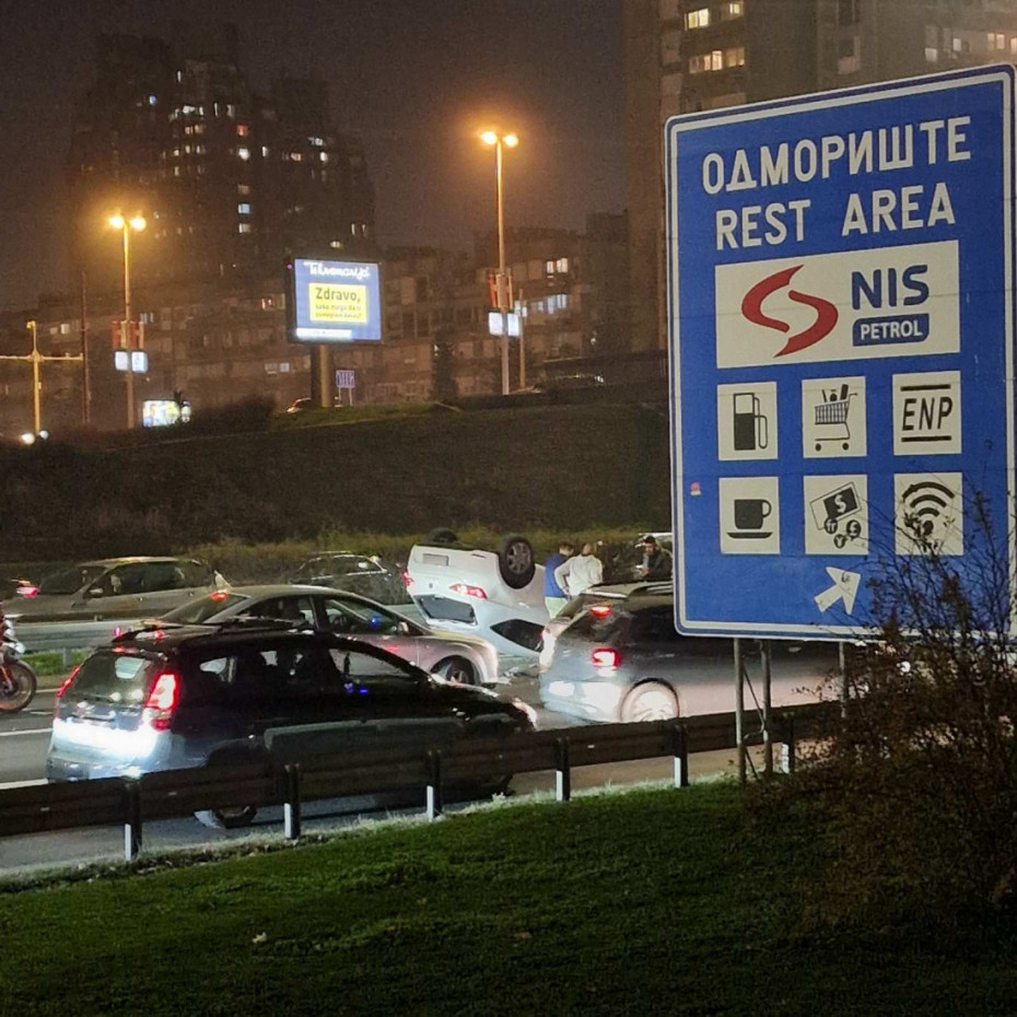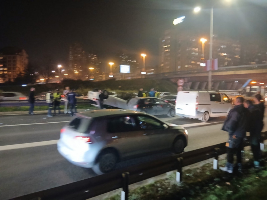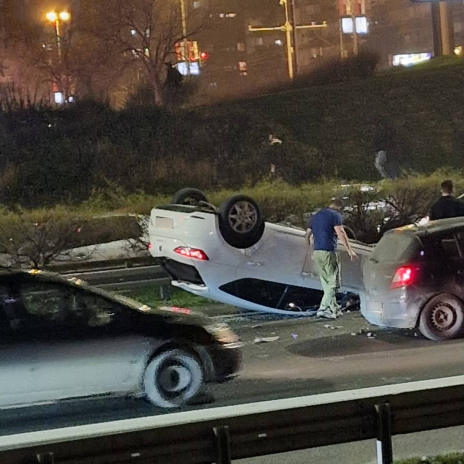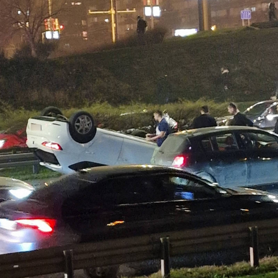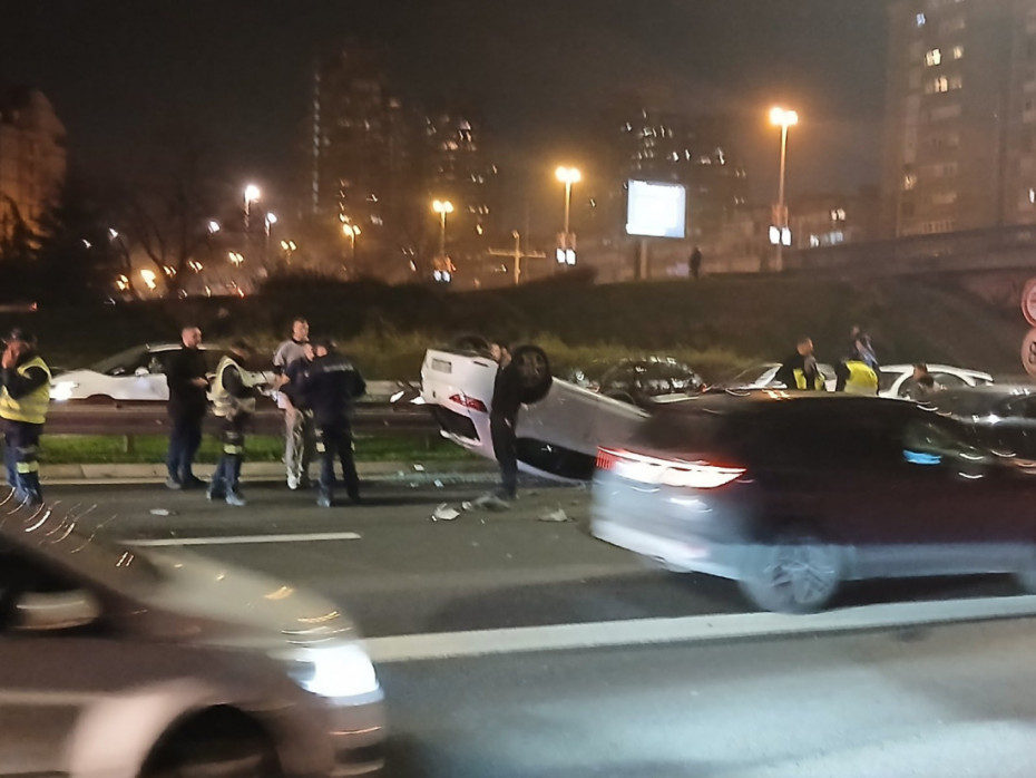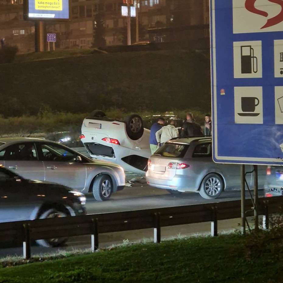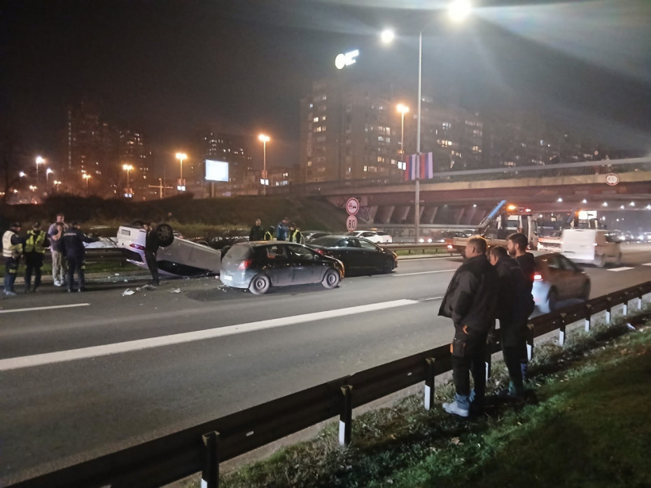Saobraćajna nesreća na autoputu kod Sava centra: Automobil završio na krovu, stvaraju se kolone