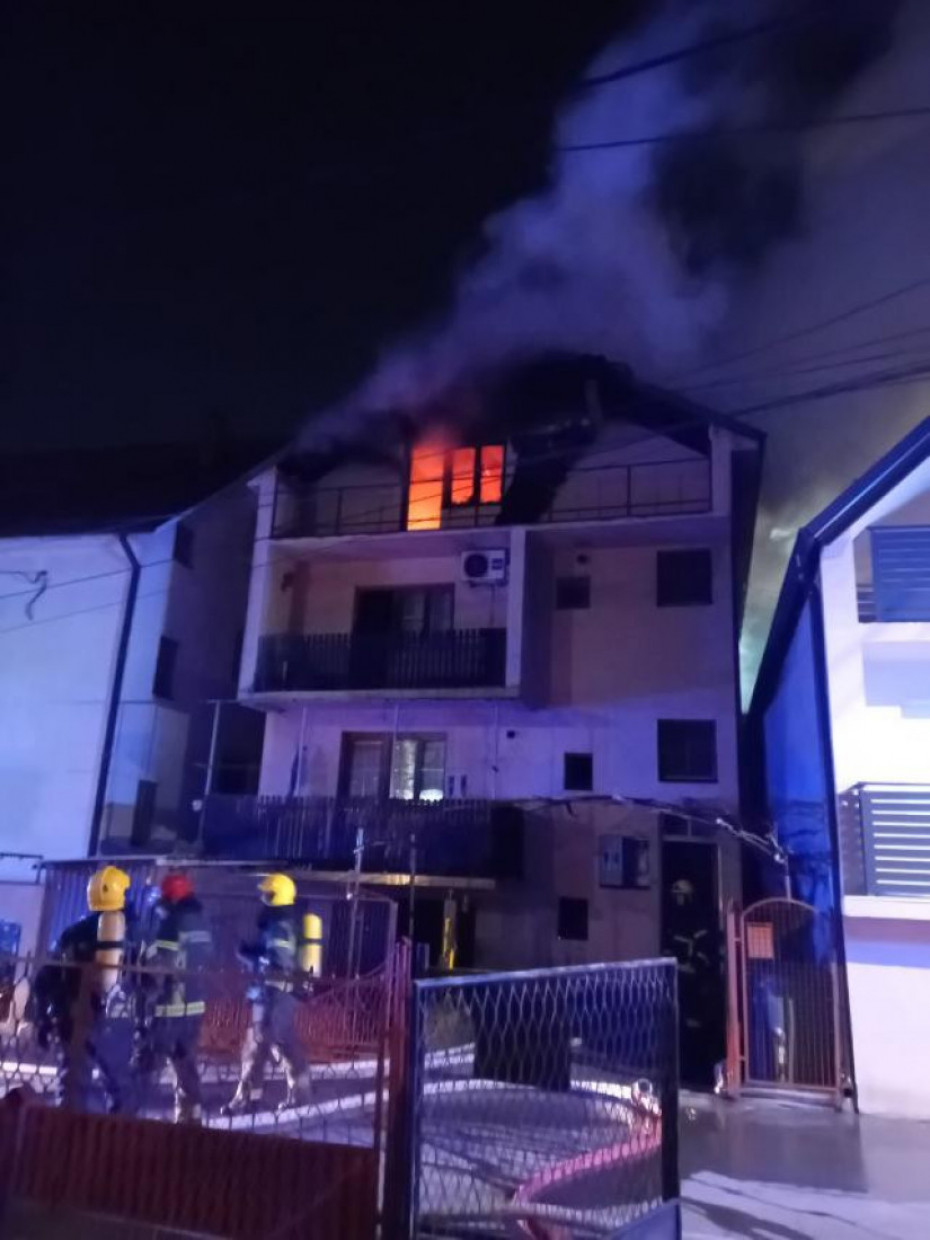 Po dolasku u 17.35 časova, vatrogasci su utvrdili da gori krov i potkrovlje objekta površine oko 80 kvadratnih metara.
