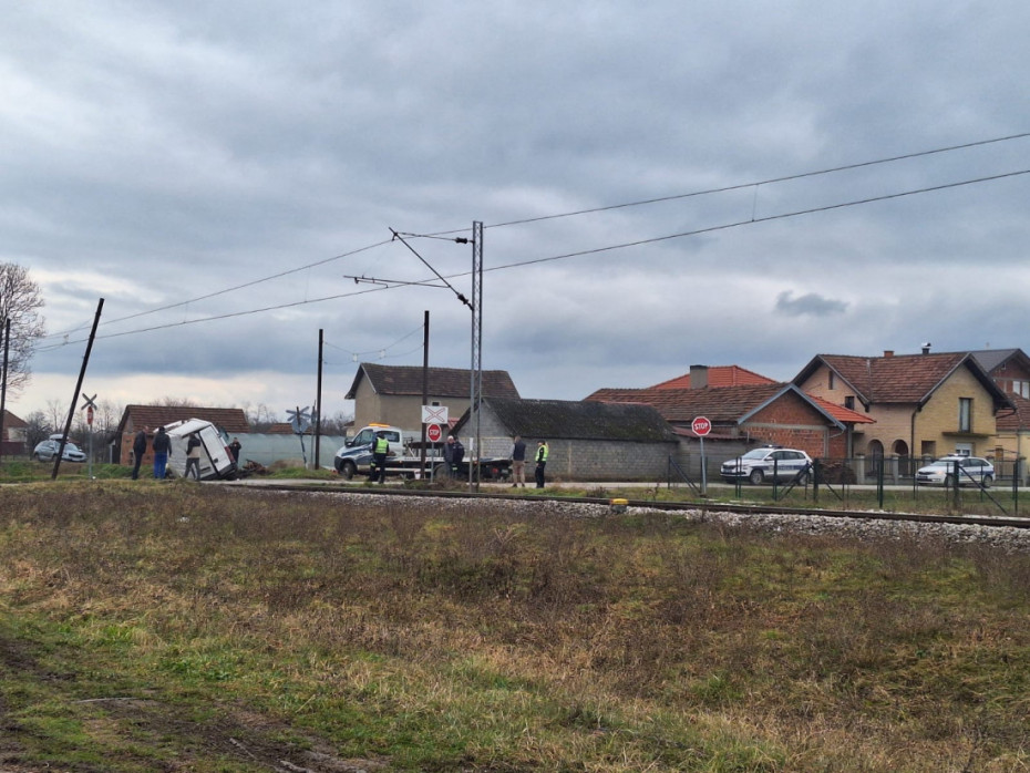 Prema rečima očevidaca, voz koji saobraća na pruzi Čačak-Kraljevo udario je u kombi, koji je nakon udara odbačen u kanal pored pruge.