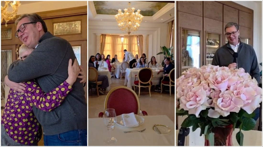 "Zahvalan svim ljudima u predsedništvu, posebno ženama, što me trpe već devet godina. Srećan što ih imam i beskrajno zahvalan! #srecanosmimart", naveo je Vučić na instagrma nalogu buducnostsrbijeav.