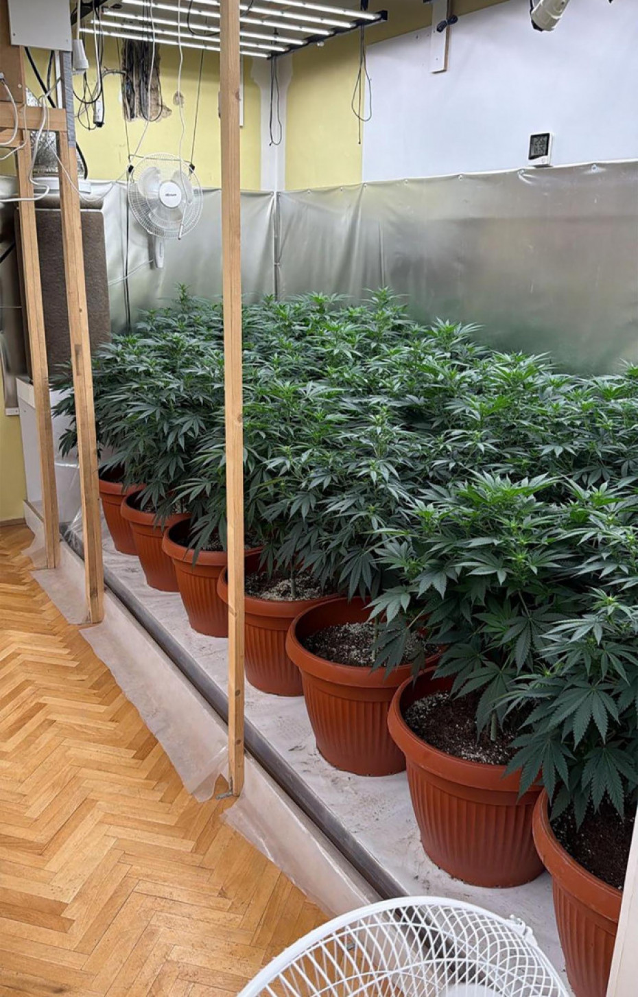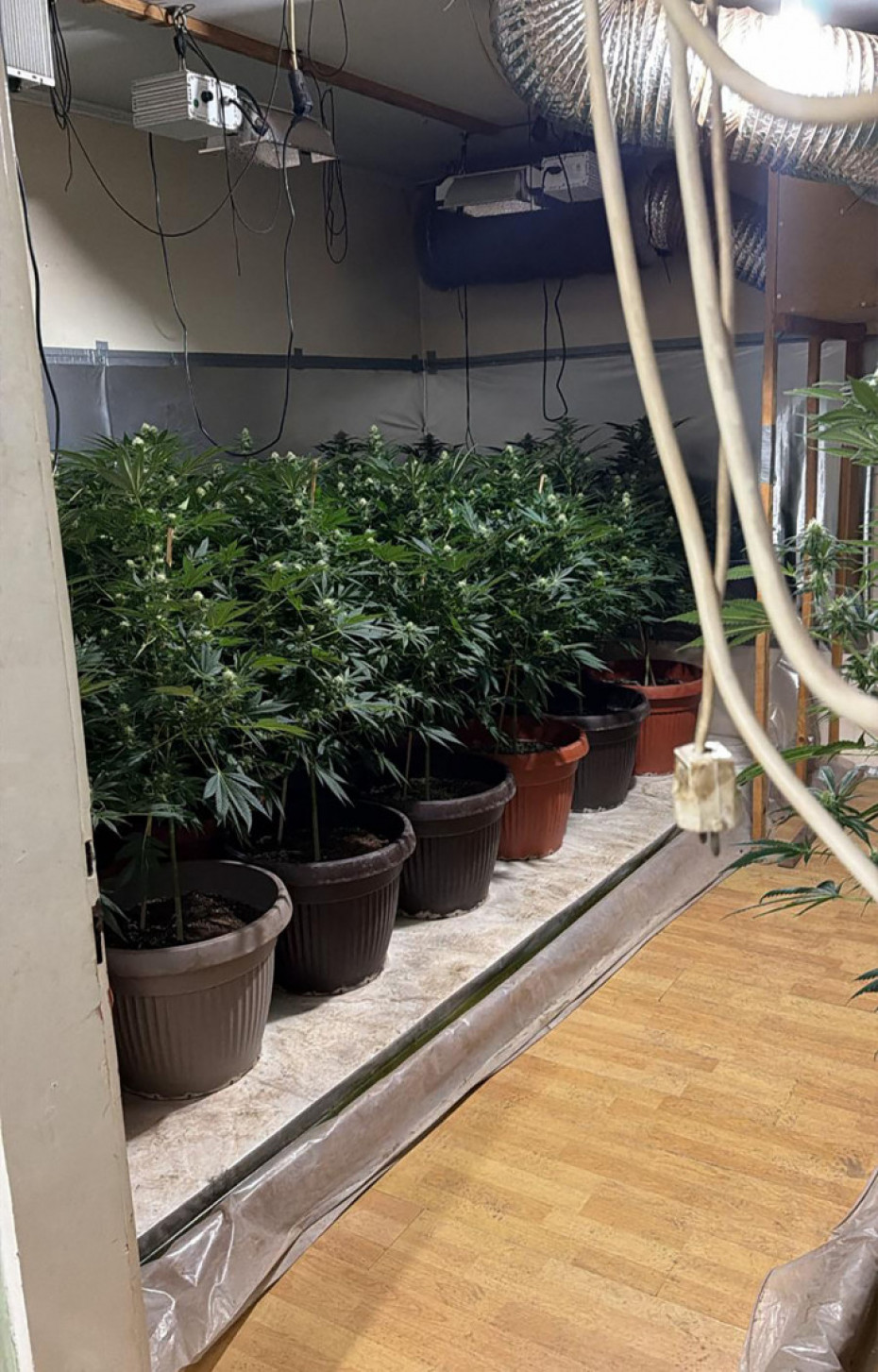 Uhapšeni su P. I. (44) i P. D. (46), kod kojih je pretresom stana i drugih prostorija koji osumnjičeni koriste, policija pronašla dve ilegalne sofisticirane laboratorije za proizvodnju kanabisa u veštačkim uslovima, sa ukupno 180 biljaka, kao i oko 12 kilograma osušene biljne materije za koju se sumnja da je marihuana.