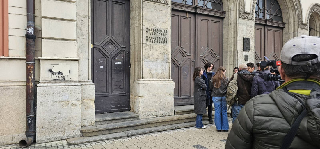 Pripadnici Uprave kriminalističke policije po nalogu Višeg javnog tužilaštva u Beogradu ušli su u zgradu Rektorata - proverava se postojanje neobezbeđenih ulaza ka Filozofskom fakultetu i nepravilnosti u radu Rektorata.