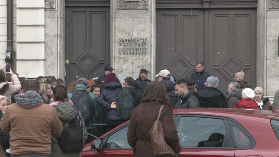 Ispred zgrade Rektorata Univerziteta u Beogradu večeras je došlo do incidenata između policije i učesnika protesta koji nisu želeli da se udalje od ulaza u zgradu.