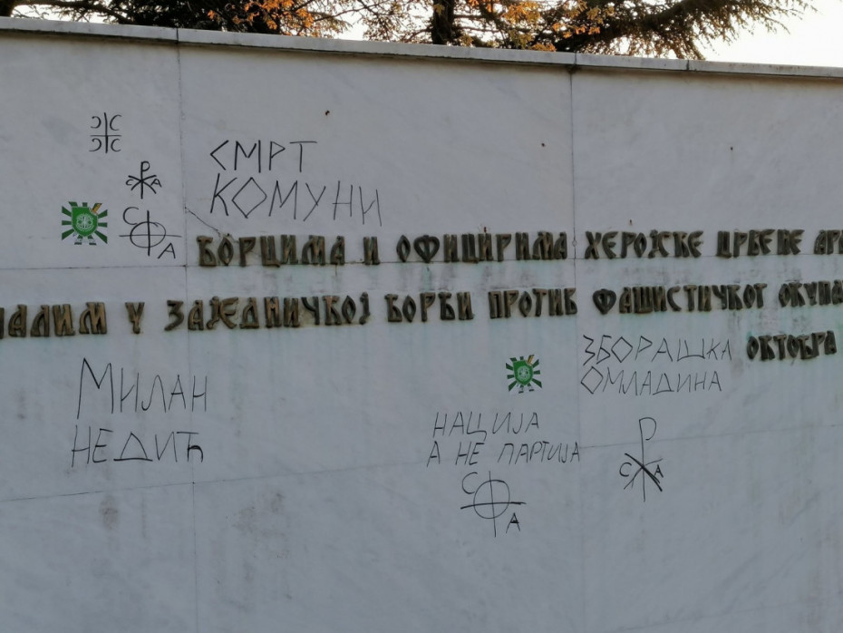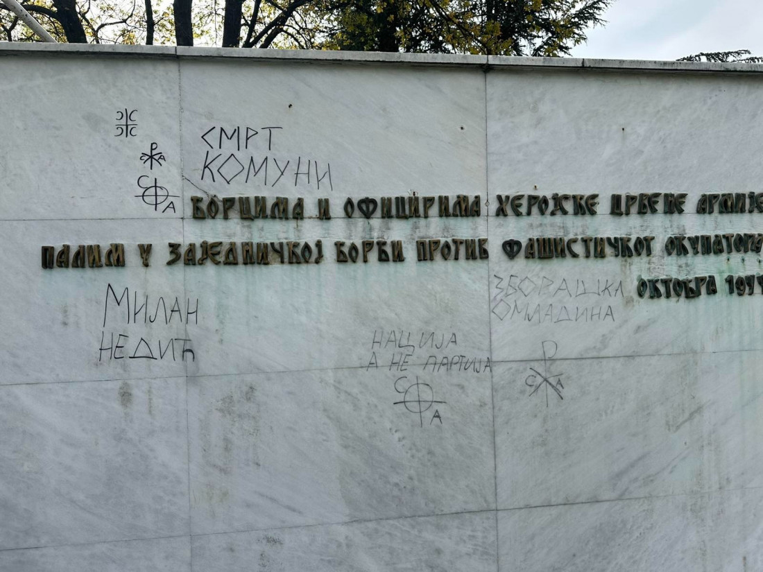 Kako je navedeno u saopštenju, ovo je već drugi napad na spomen obeležja posvećena herojima Crvene armije, za svega mesec dana, sa istim fašističkim potpisom.