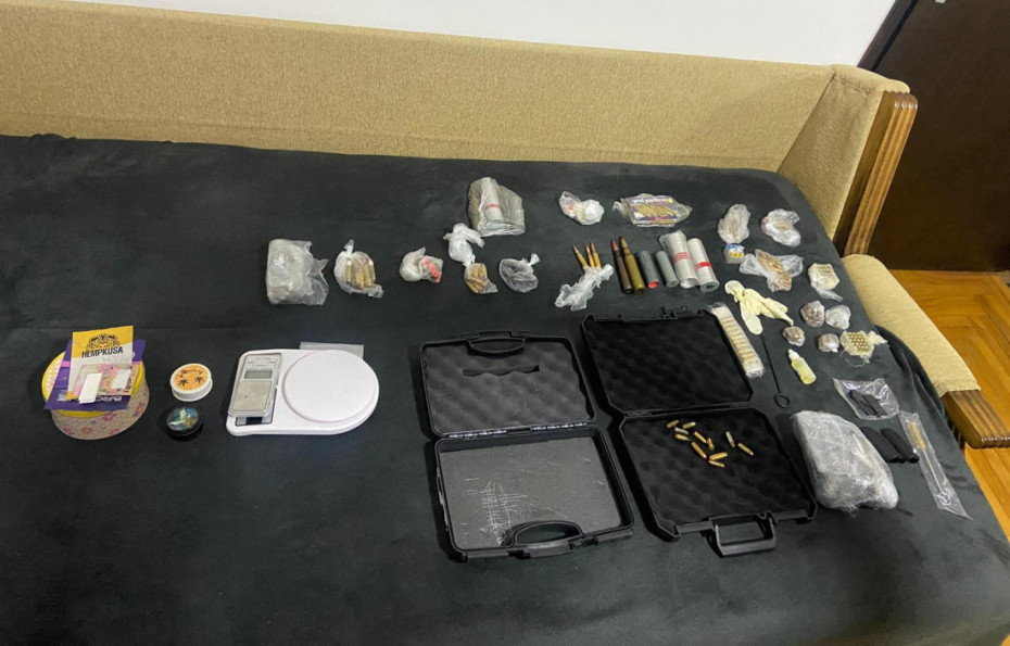 "Takođe, pronađena su tri presovana paketa i više kesica biljne materije nalik na marihuanu, više vagica za precizno merenje i druga oprema, falsifikovane isprave, više komada hladnog oružja, silikonska maska, kao i motocikl i teretno motorno vozilo", navode iz policije.