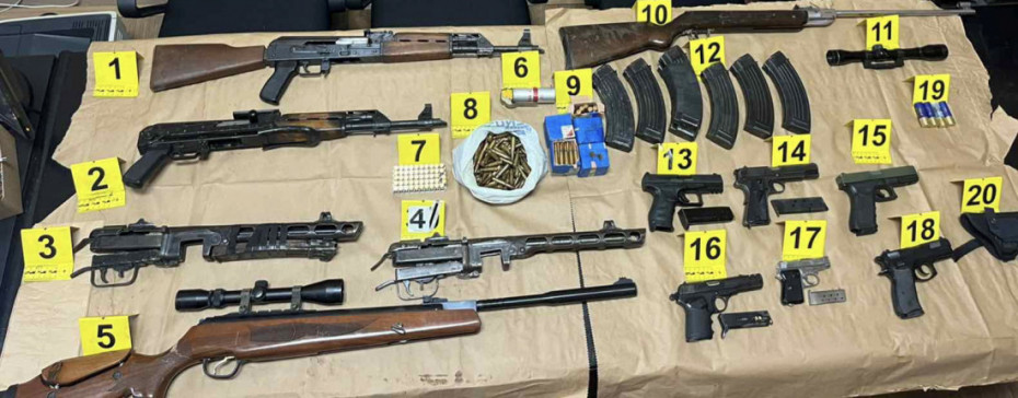 Tokom pretresa stanova i drugih prostorija koje su osumnjičeni koristili, pronađen je ozbiljan arsenal - tri puške, među njima snajper i automatska, više vrsta pištolja, automat, prigušivači, okviri, laserski nišan, više od 320 komada municije, kao i materija za koju se sumnja da je eksploziv sa detonatorskom kapislom. Uz to su otkriveni narkotici, vagice za precizno merenje, falsifikovana dokumenta, hladno oružje, silikonska maska, kao i vozila koja mogu služiti za transport.