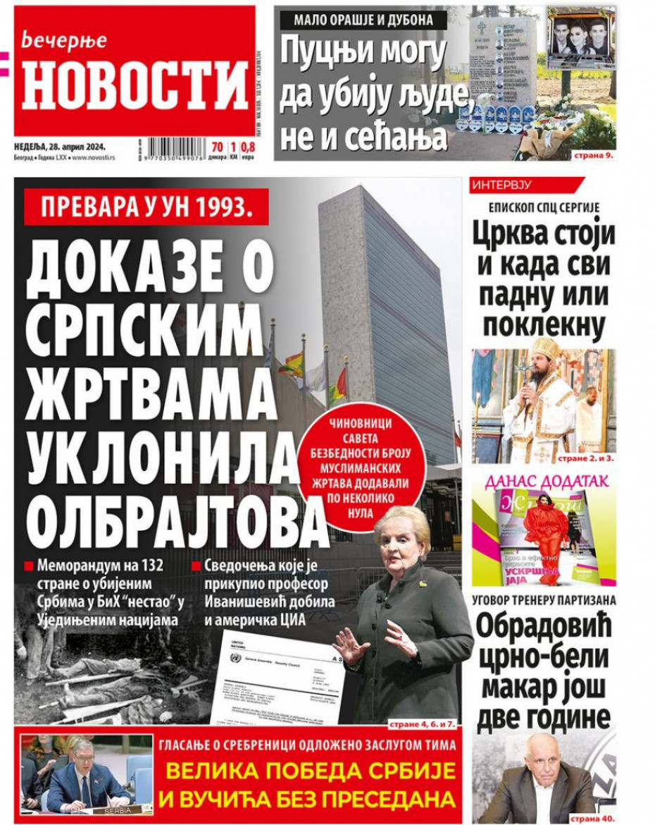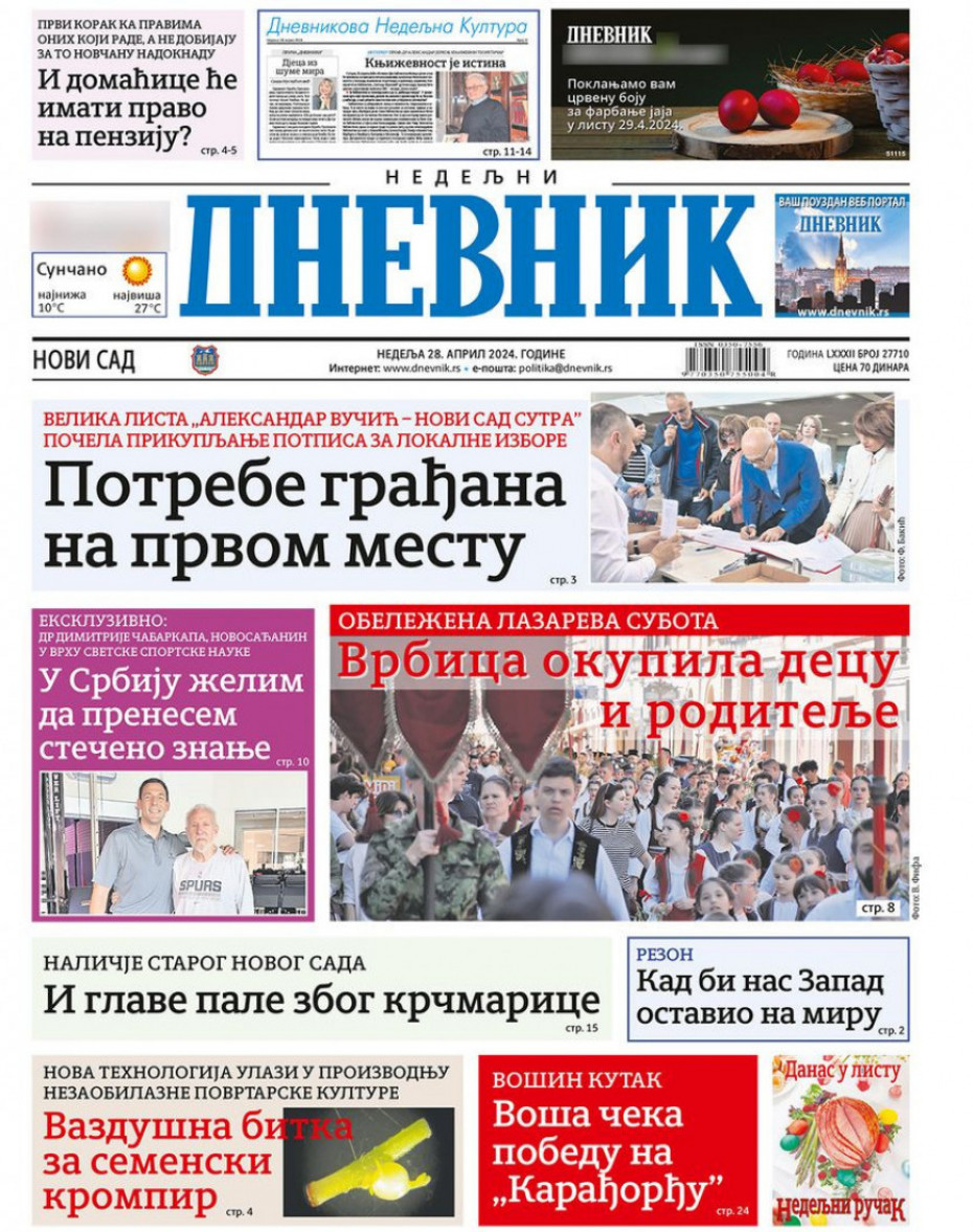 Pogledajte šta na naslovnim stranama donose dnevne novine u Srbiji u izdanju za nedelju, 28. april.