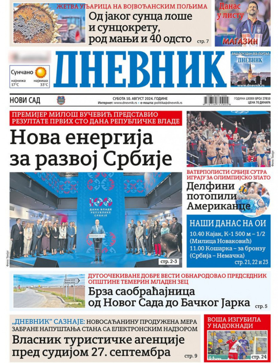 Pogledajte šta na naslovnim stranama donose dnevne novine u Srbiji u izdanju za subotu, 10. avgust