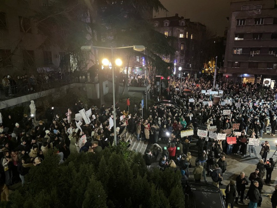Već oko 19 časova plato ispred Radio televizije Srbije bio je u potpunosti ispunjen. Studenti su došli u velikom broju, ne samo da je plato ispred RTS-a ispunjen, već je zatvorena i čitava Takovska ulica, tako da u ovom trenutku saobraćaj u ovom delu grada ne funkcioniše.