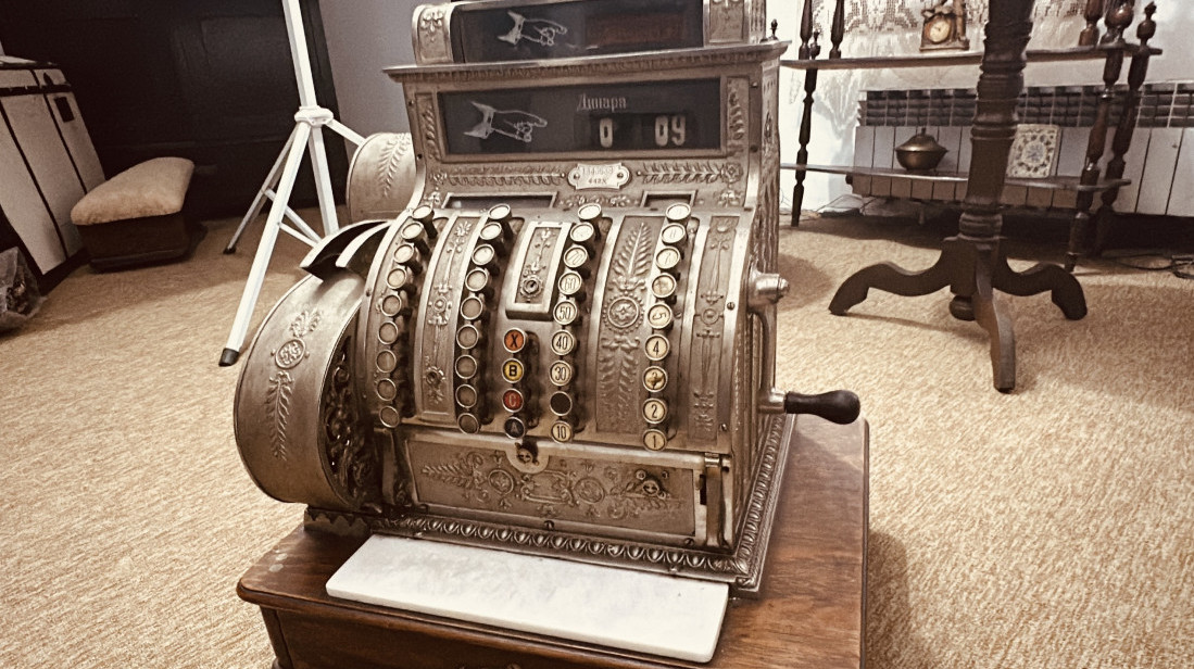 Reč je o kasi proizvođača NCR iz SAD, koja je proizvedena po patentu koji je registrovan 1884. godine i predstavlja prvu kasu tog tipa u svetu.