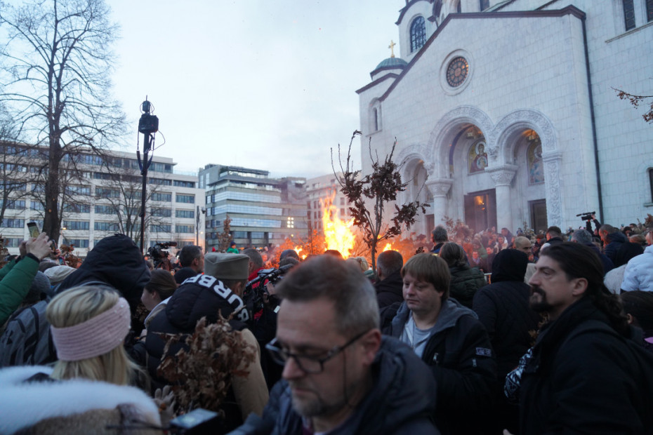 Kako je izgledalo paljenje badnjaka ispred Hrama Svetog Save čime je obeleženo Badnje veče