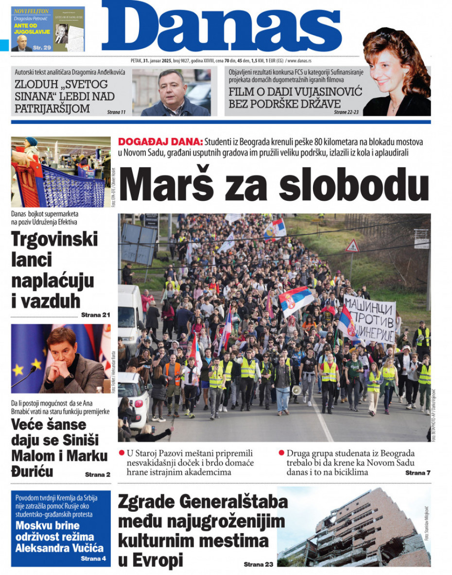 Naslovne strane dnevne štampe za petak, 31. januar