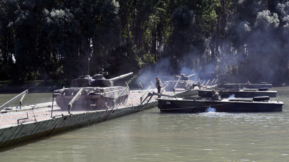 Snage u sadejstvu iz sastava Rečne flotile prikazale su mogućnosti za prevoženje borbenih jedinica brodovima i skelama i formiranje pontonskog mosta.