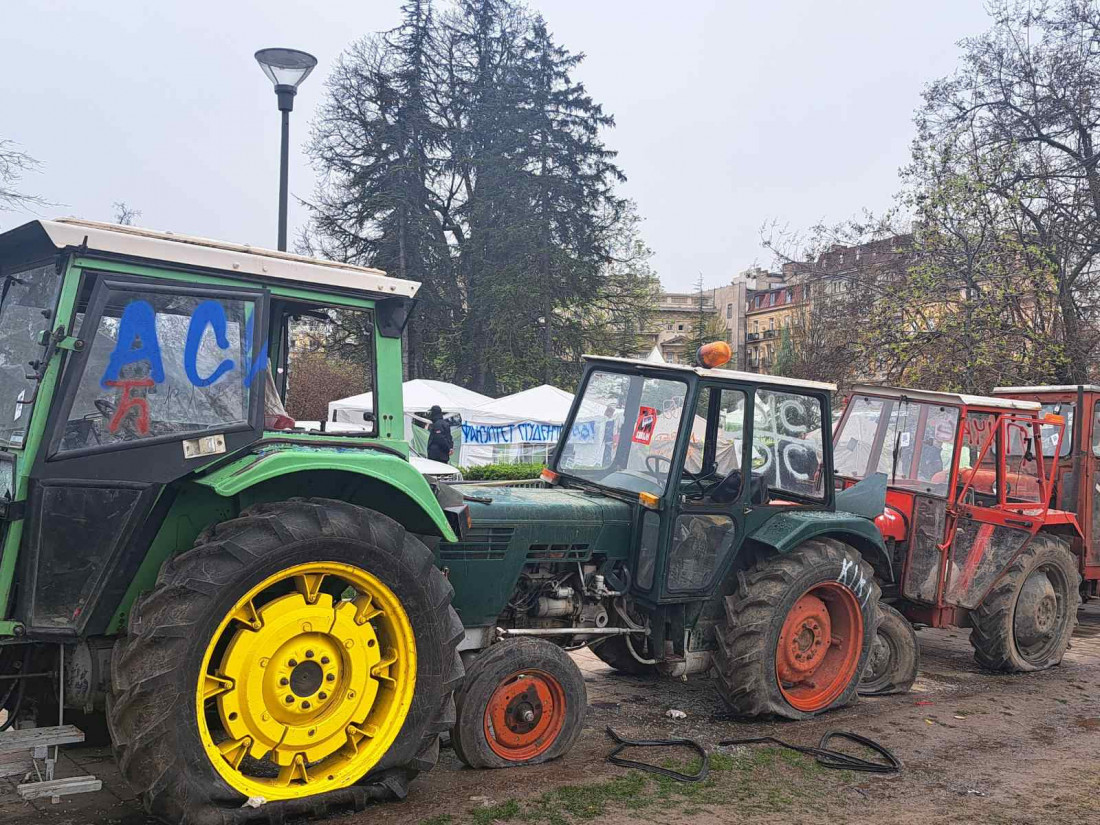U to vreme su oko Pionirskog parka, gde su bili studenti koji kažu da žele da uče, bili parkirani traktori koji su uništeni.