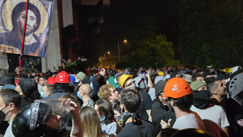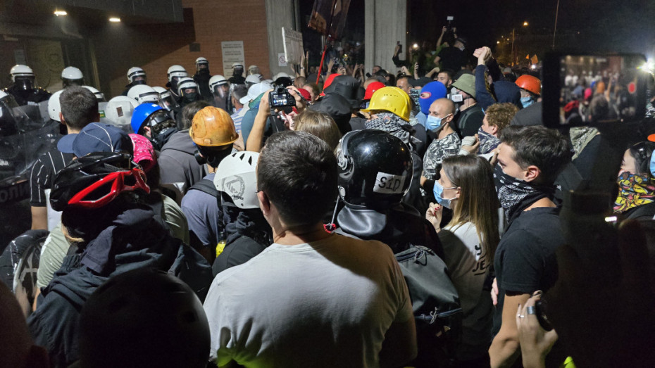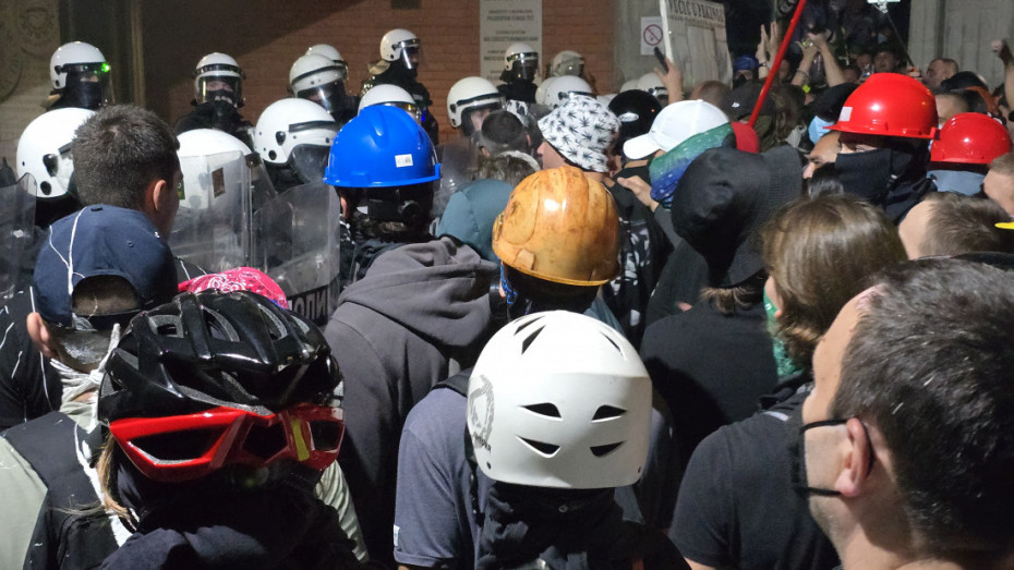 Učesnici protesta ispred Filozofskog prošle nedelje su nekoliko puta napali policiju, a grupa studenata u blokadi i okupljenih na njihov poziv je 1. septembra u nekoliko navrata pokušala da silom uđe na DIF, ali ih je policija potisnula.