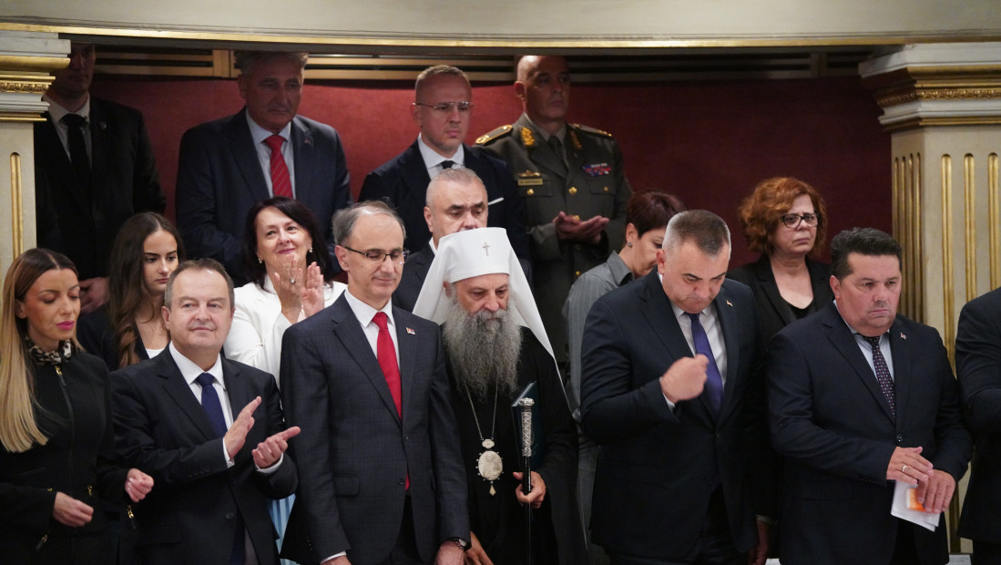 "Srbija je država, stara, narodna, demokratska i snažna i svoje poslove će svršavati u svojoj zemlji, demokratski i institucionalno. Braćo i sestre, neka nikada više pucanj oružja ne bude taj glas koji nas budi i poziva na odbranu identiteta i dostojanstva. Neka nas u budućnosti u kojoj nam je mir potrebniji nego ikada ranije, na to podsećaju i opominju upravo zvuci igre, muzike i pesme kojima se večeras sećamo naših predaka, njihove borbe i njihove svete žrtve za našu slobodu i za našu Srbiju", poručio je premijer Srbije.
