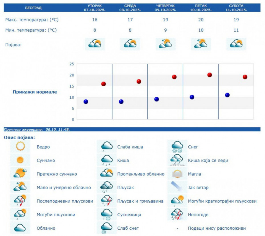 Republički hidrometeorološki zavod Srbije (RHMZ) na svom sajtu objavio je novu najavu za vremenske uslove koji nas očekuju danas, ali i narednih dana.