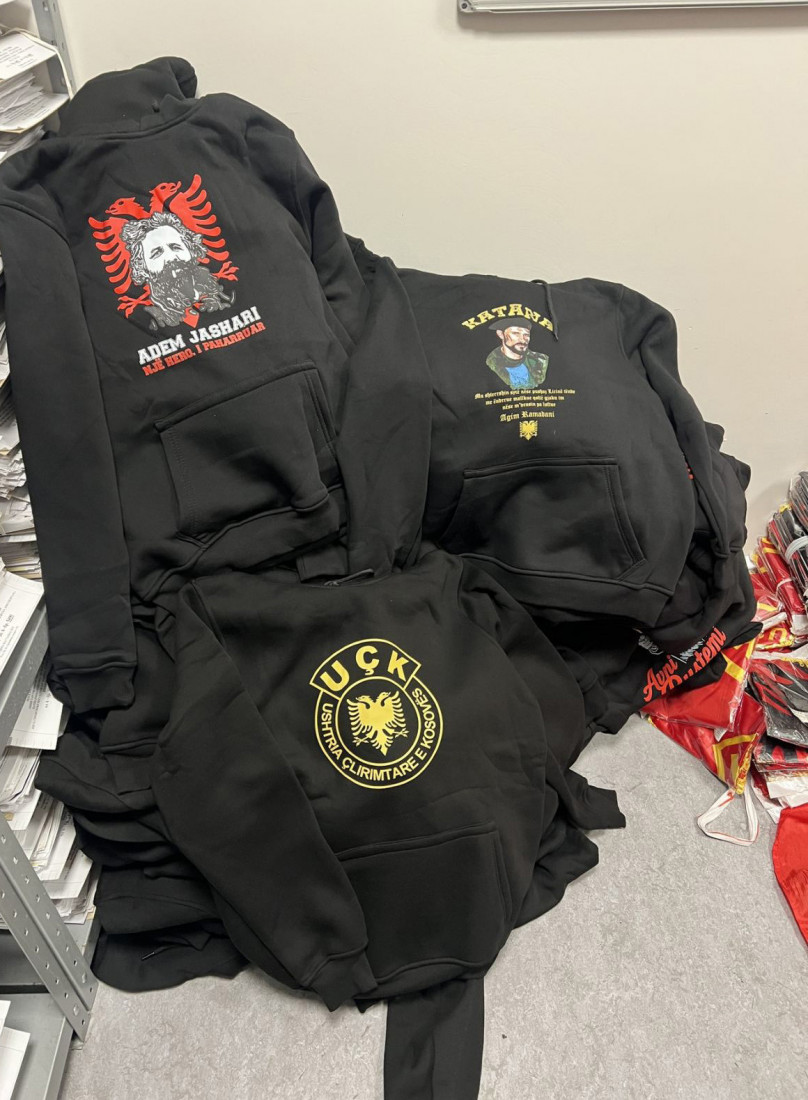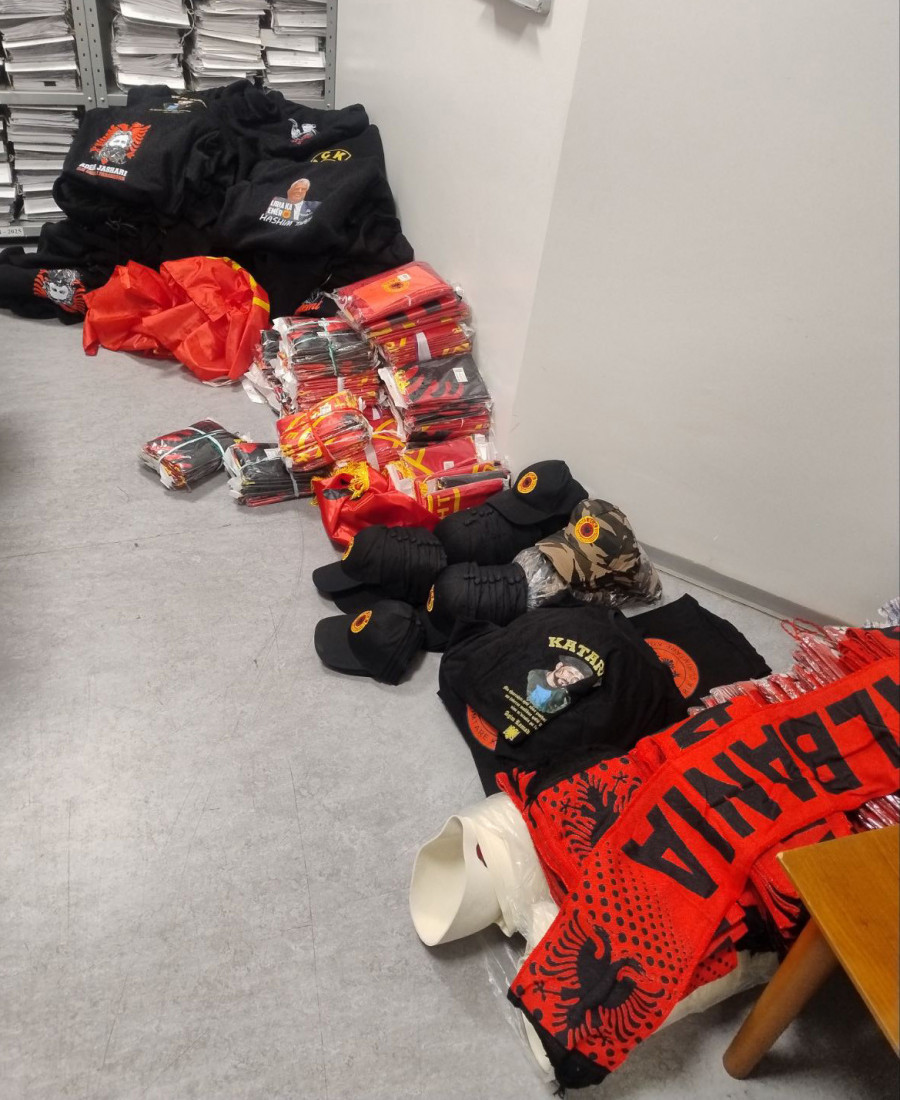 Кako se sumnja, dodaje Dačić, navedeni predmeti i delovi odeće su planirani da se koriste i budu istaknuti na predstojećoj utakmici u Leskovcu, između fudbalskih ekipa Srbije i Albanije.