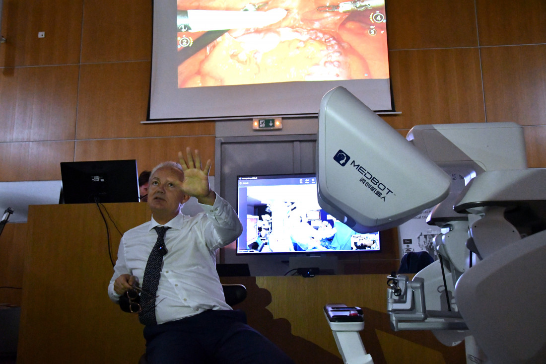 "Ja sam do sada uradio 8.000 takvih intervencija i veoma sam ponosan što sam danas u Beogradu, odakle ću da uradim prvi put u ovom regionu robotsku operaciju na pacijentu koji je u Belgiji", poručio je on.